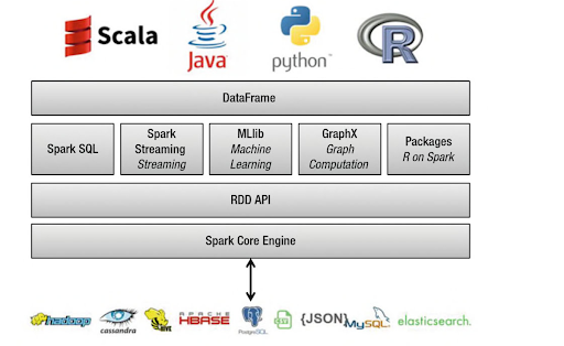 Spark는 Scala, java, python, R등 다양한 언어를 지원한다. (Spark내부적으로는 Scala로 동작한다.)