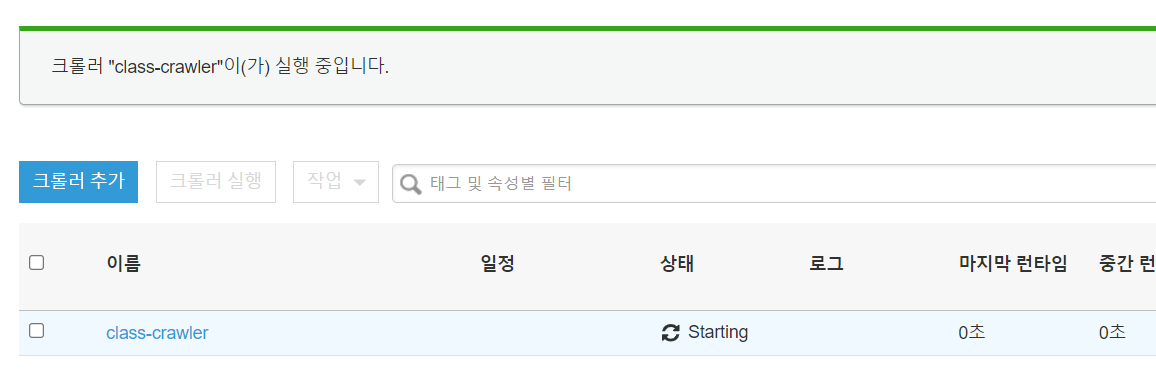 4. 크롤러를 선택하고 실행해줍니다.