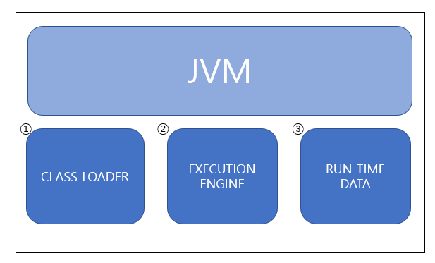 JVM 은 크게 CLASS LOADER, 실행엔진, 런타임데이터 영역으로 나뉩니다.
